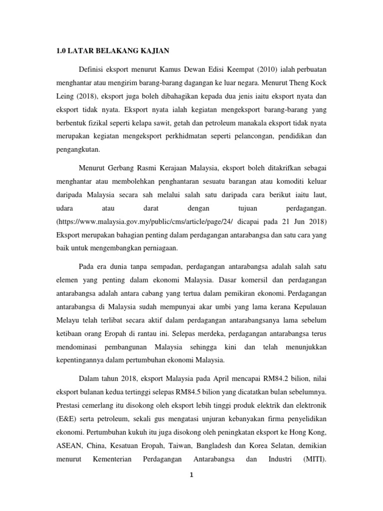 Ekonomi Kerja Kursus Docx 1 0 Latar Belakang Kajian Dalam Kajian Ini Pengkaji Menjalankan Kajian Tentang Perdagangan Luar Malaysia Dari Tahun 2004 Course Hero